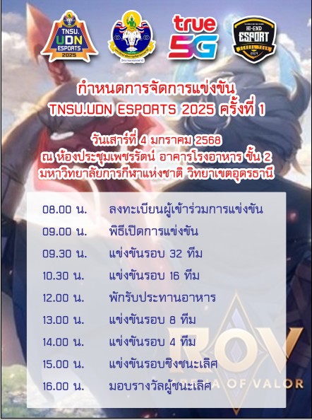 กำหนดการ การแข่งขันกีฬาอีสปอร์ต “TNSU.UDN ESPORTS 2025 ครั้งที่ 1”