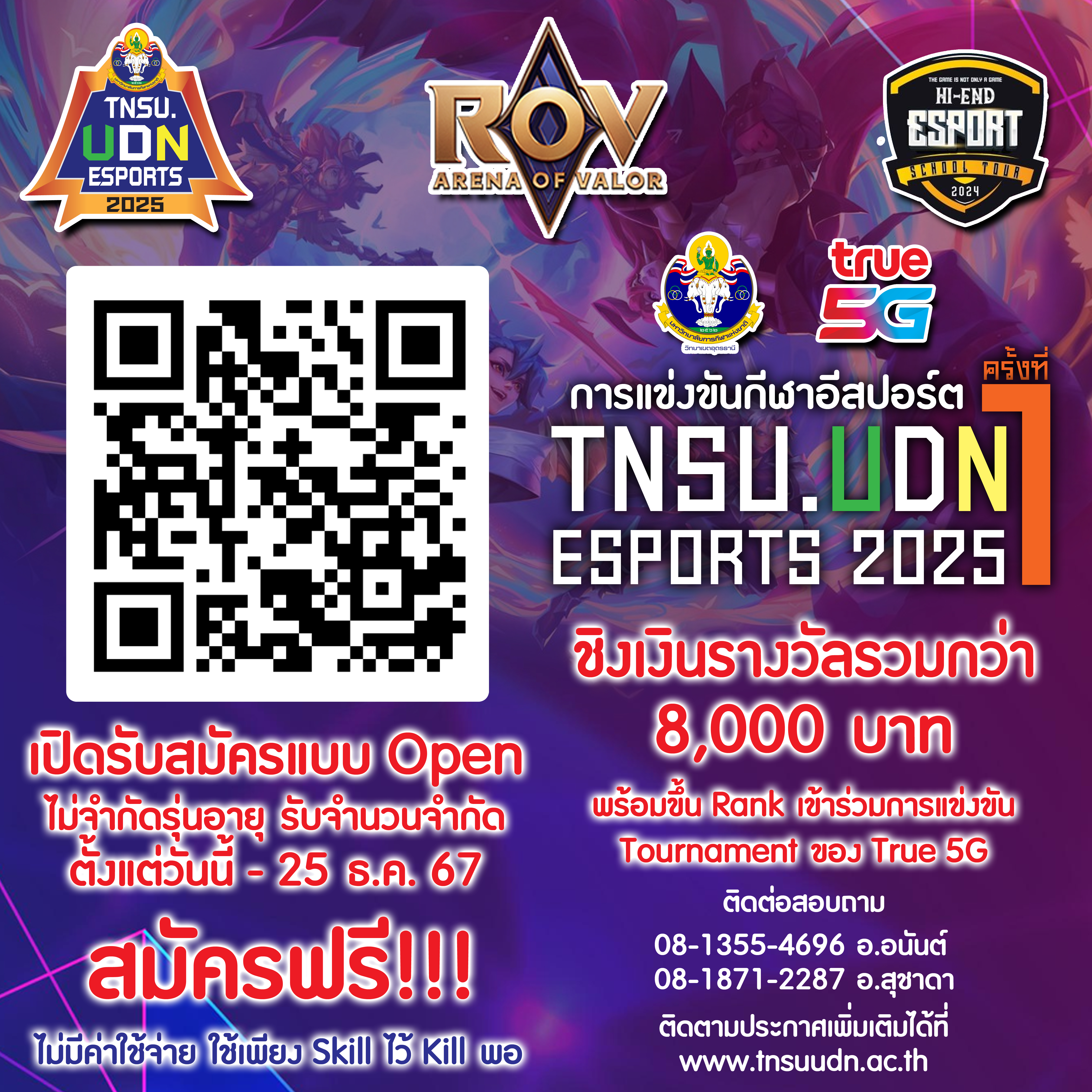 ประกาศรายชื่อทีมที่ลงแข่งขัน “TNSU.UDN ESPORTS 2025 ครั้งที่ 1”